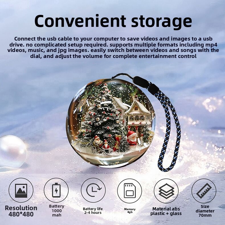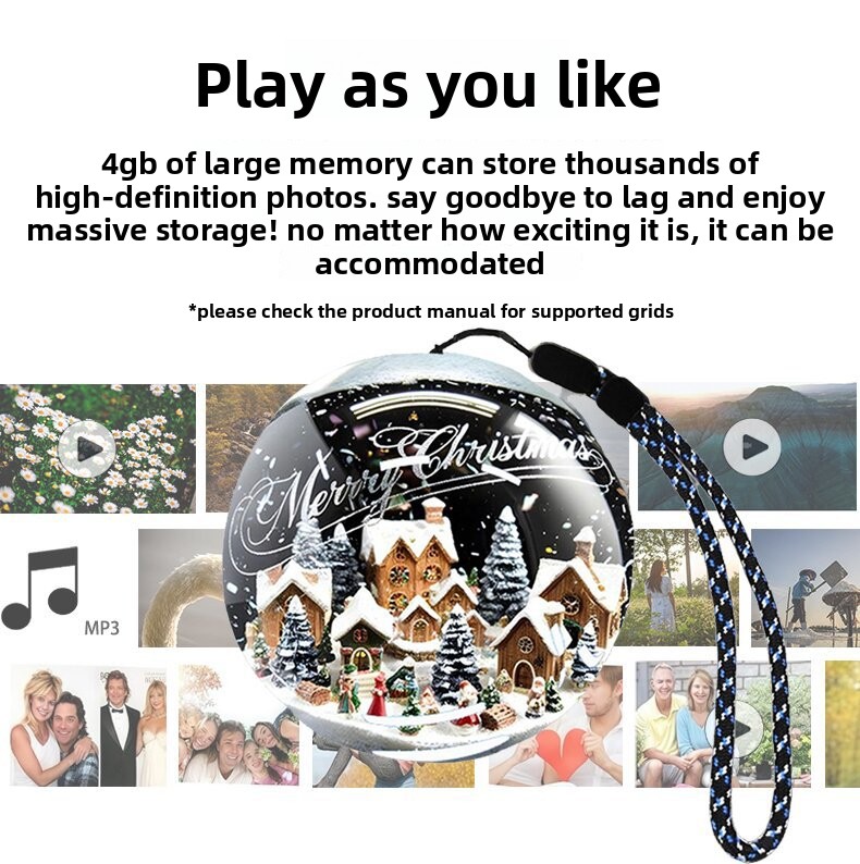 Multifunctional Display: Plays videos, music, and displays images in a decorative crystal ball.